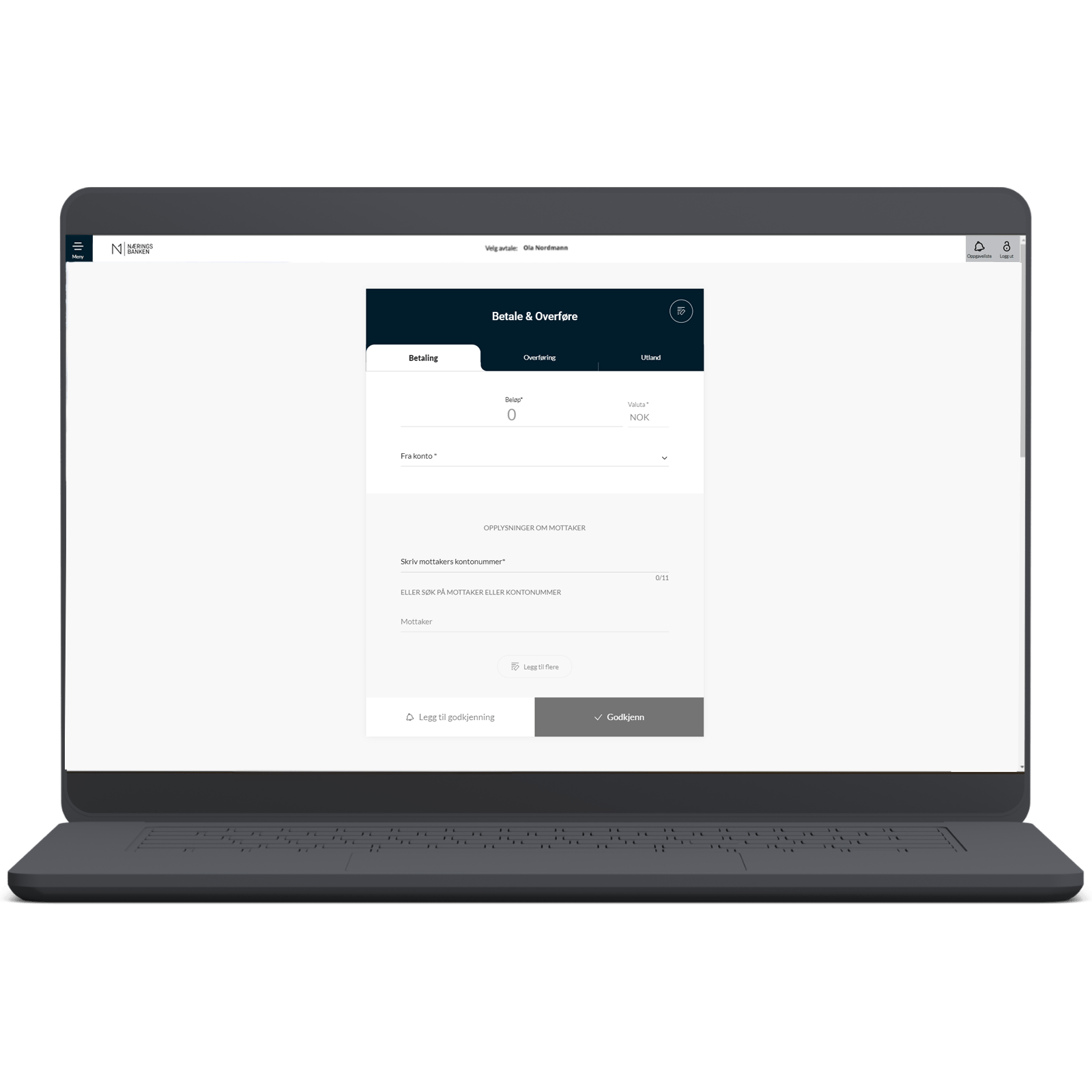 - Velg «Legg til godkjenning» om du vil godkjenne senere eller sammen med andre betalinger/overføringer