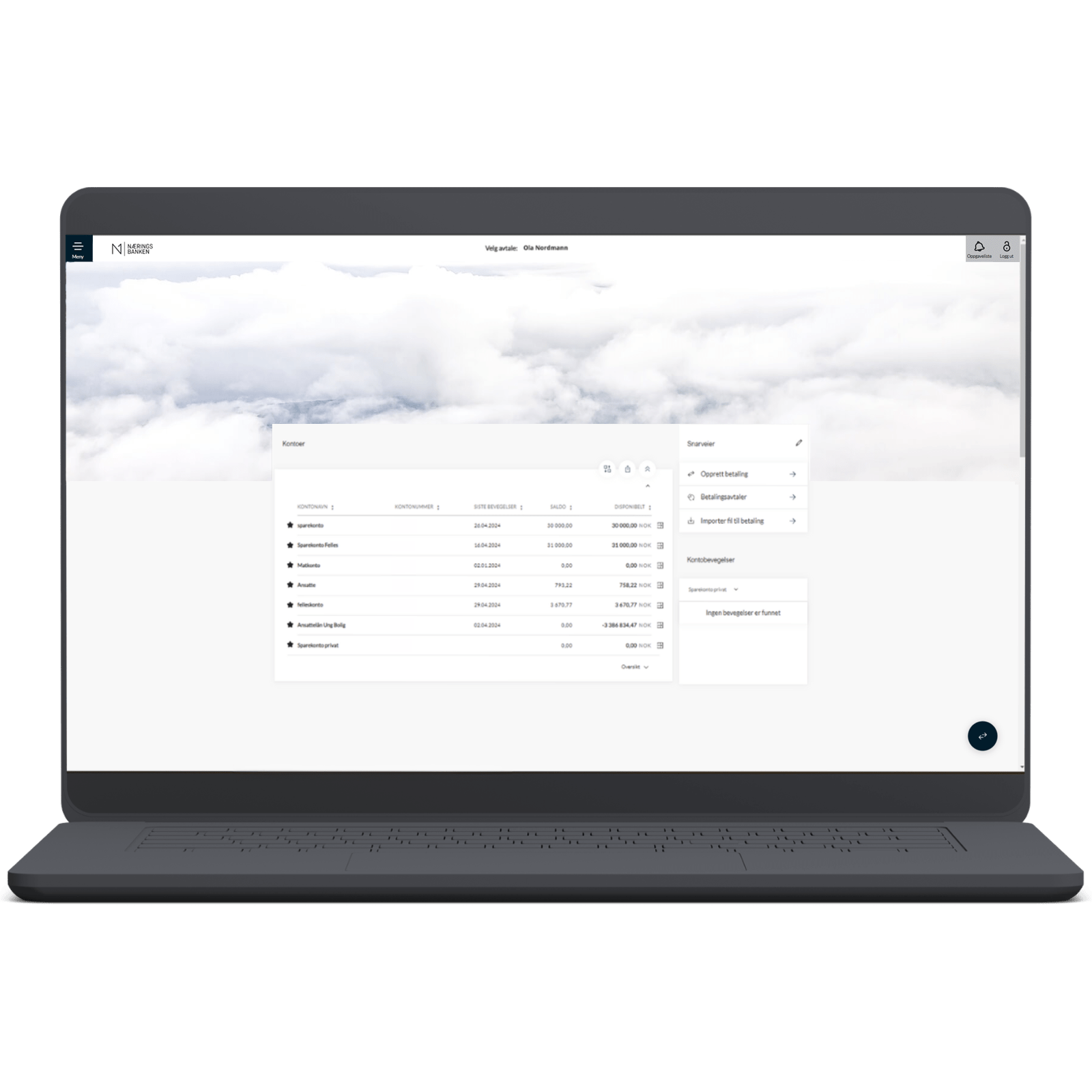 Forsiden i nettbanken